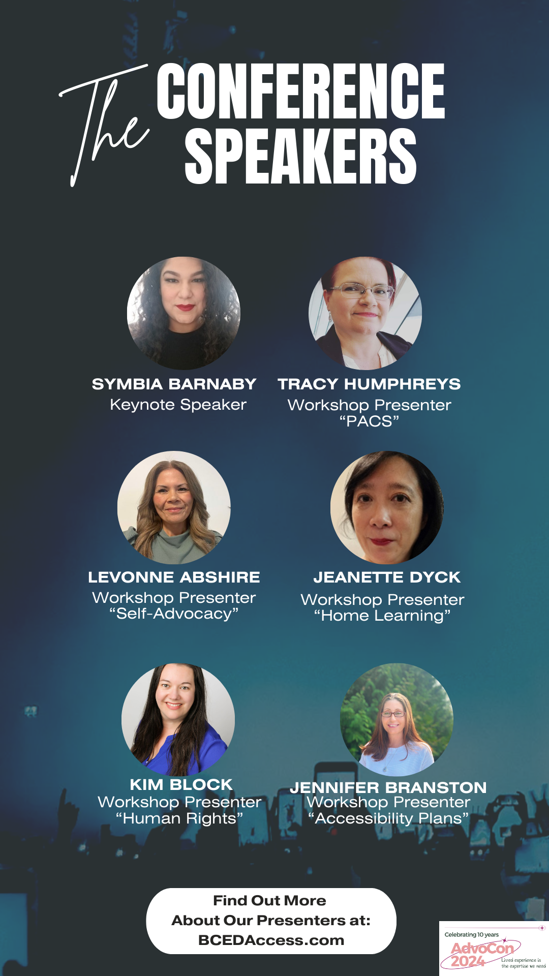 Tickets are now on sale. $45.00. For those who need financial assistance to attend, please email secretary@bcedaccess.com. Don’t let the fee to be a barrier for people to attend.