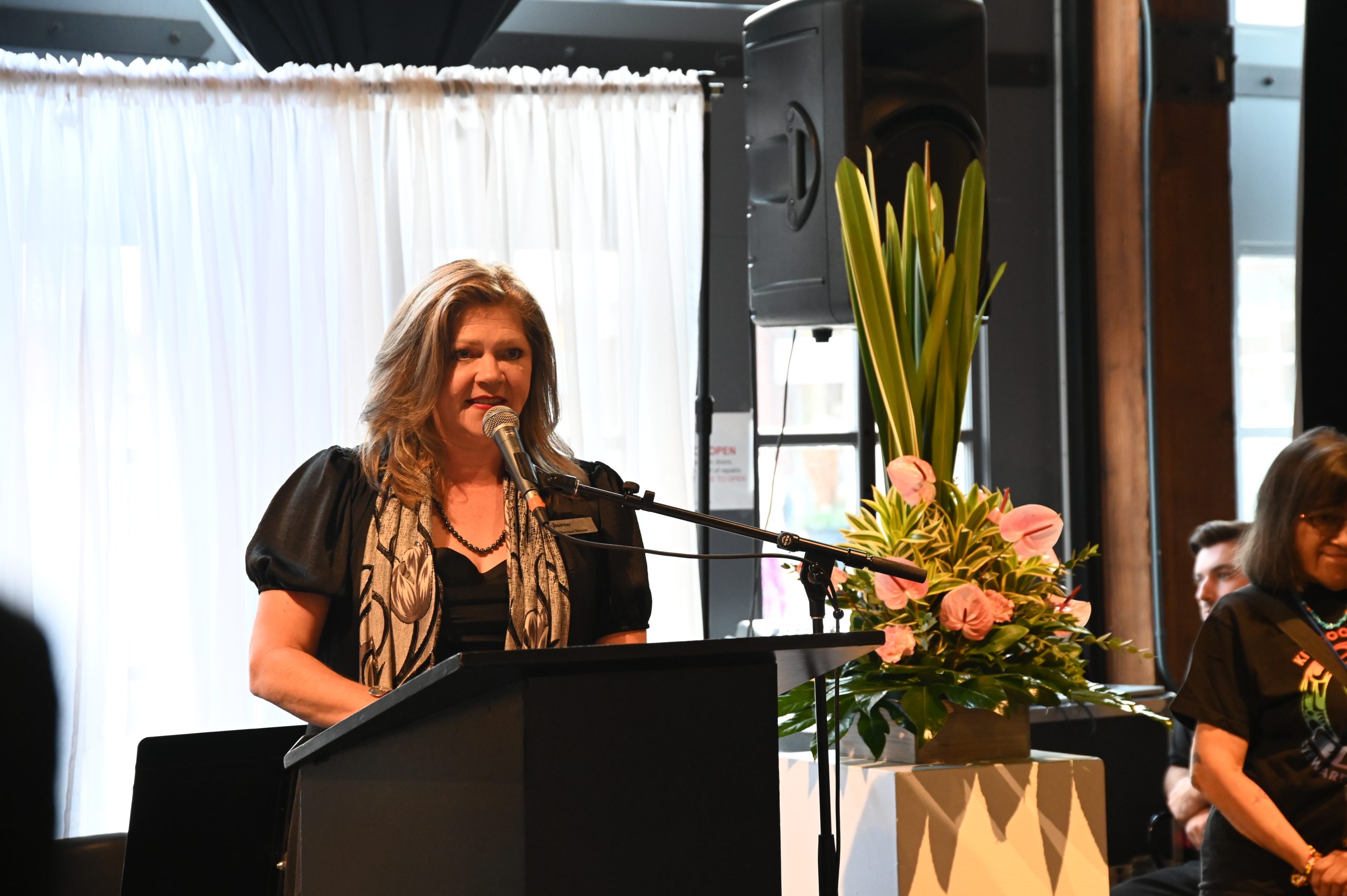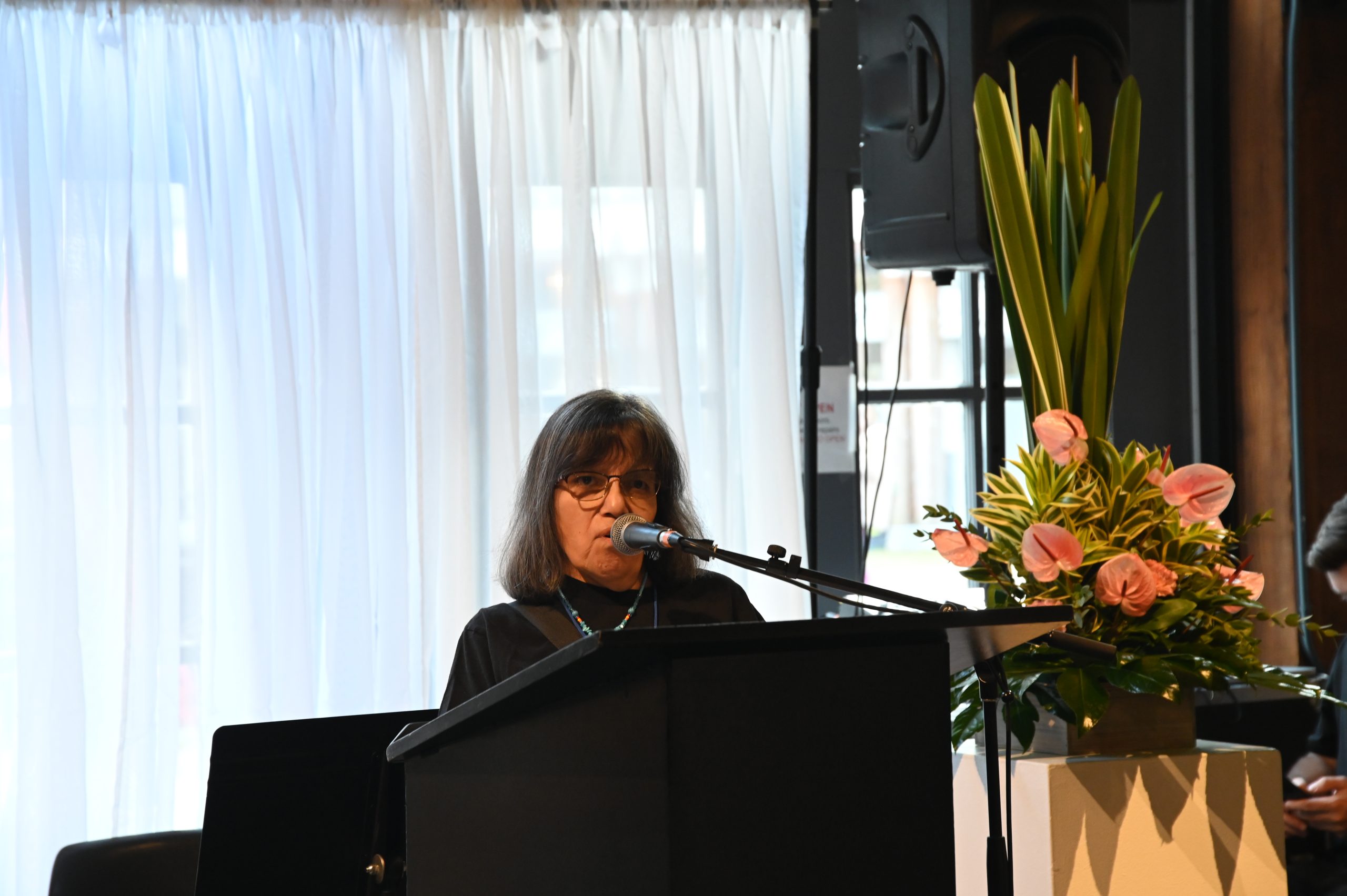 Indigenous artist and 60s Scoop Survivor, Sandra Pronteau, followed with a heartfelt blessing, honouring the courage and creativity of all participants and celebrating the importance of gathering to share art and stories.